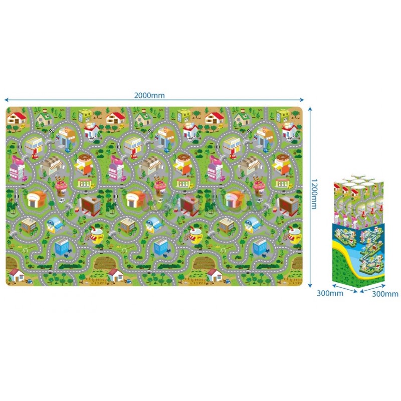 Conduce tu cochecito por esta mega ciudad con sus carreteras y casas dibujadas.