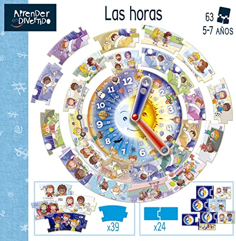 Juego Divertido Aprender Las Horas Educa, reloj montable con el que los niños y niñas aprenderán las horas lúdicamente. Con el reloj montable los niños podrán manipular las agujas y practicar los conceptos de hora analógica y digital al mismo tiempo que la relacionan con imágenes de sus rutinas.