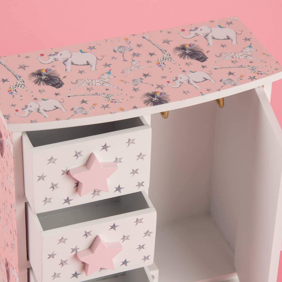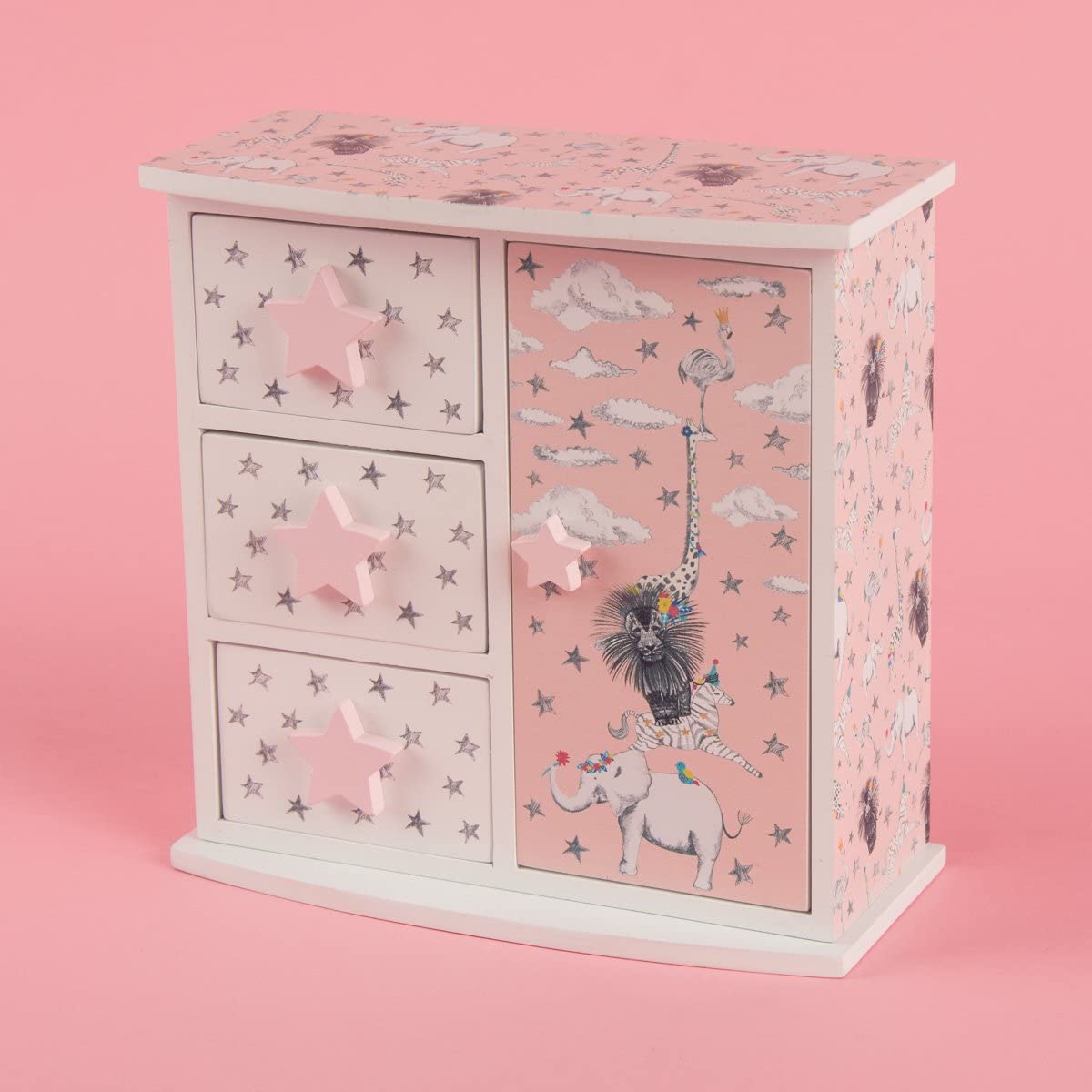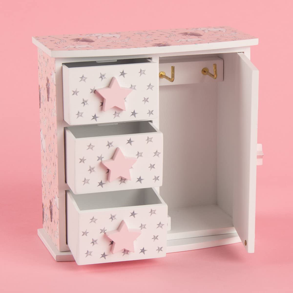 Caja de madera con bonito diseño que quedará genial en un dormitorio de niñas y es perfecta para almacenar tesoros, un artículo imprescindible para decorar tu espacio.