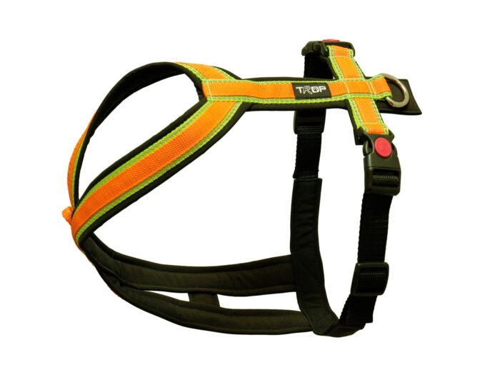 El arnés TrOP BASE es versátil en su aplicación: se puede usar para caminatas diarias con el perro, así como para actividades más específicas como rastrear, correr y caminar. También es una alternativa de canicross perfecta para perros que prefieren un arnés corto que no ejerza presión sobre las caderas del perro. La forma corta también permite un mejor control del perro. Tiene dos opciones de conexión de correa, además del punto de enganche en la espalda, también hay un bucle para unir una línea en el cofre para un control suave contra tirones.