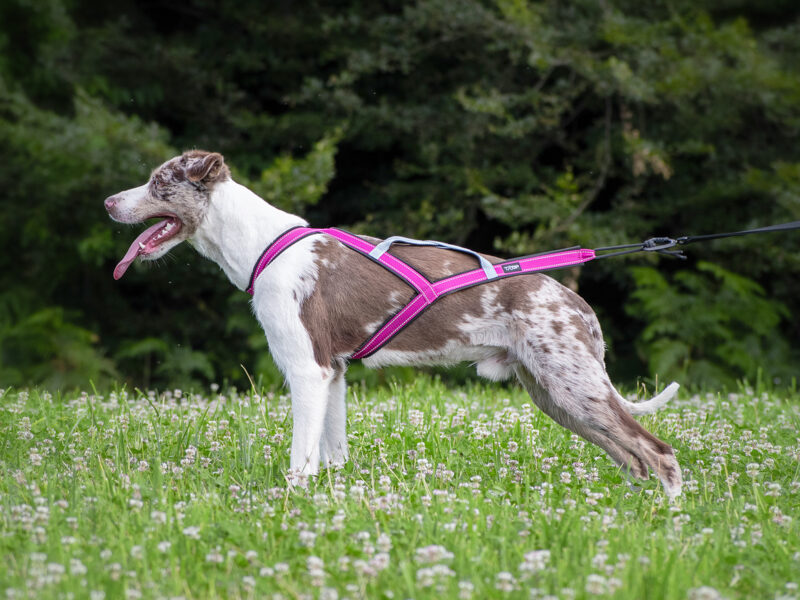 TrOP BACKBONE es un arnés X-back para tirar de los deportes de perros (canicross, bikejoring, skijoring, scooter) inspirado en el arnés de trineo tradicional pero más corto, para permitir al perro la máxima libertad de movimiento dejando la parte trasera completamente libre.