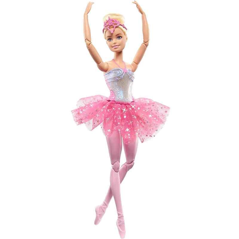 Barbie bailarina con tutú rosa y luces de colores en el corset.