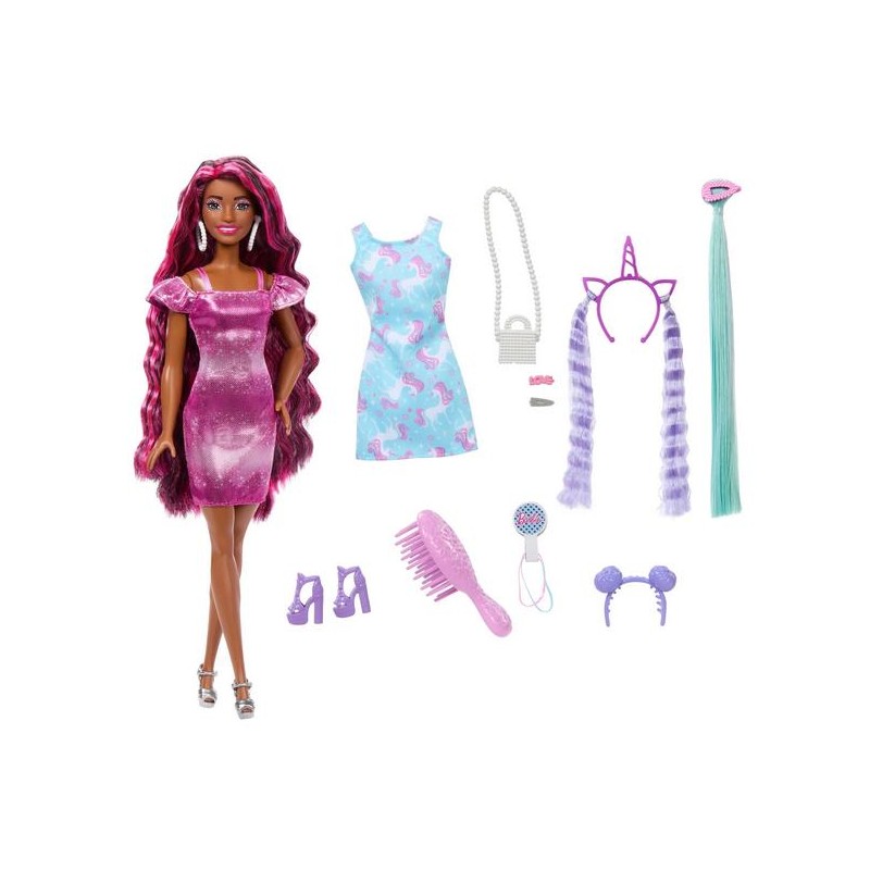 Dedicada a todo lo relacionado con el cabello, la colección Barbie Fun & Fancy Hair muestra muñecas glamorosas con peinados coloridos. Además, las 10 piezas de moda y estilo incluidas permiten una personalización infinita.