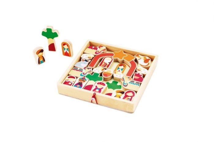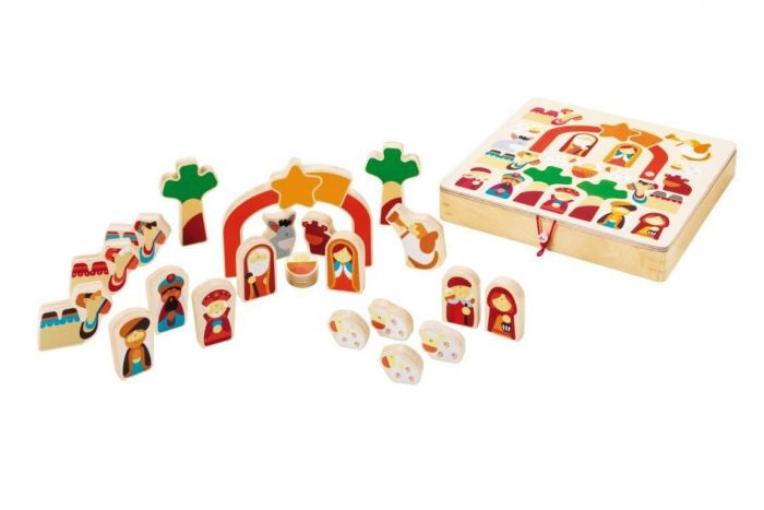 21 piezas de madera representación del Nacimiento y Adoración.
