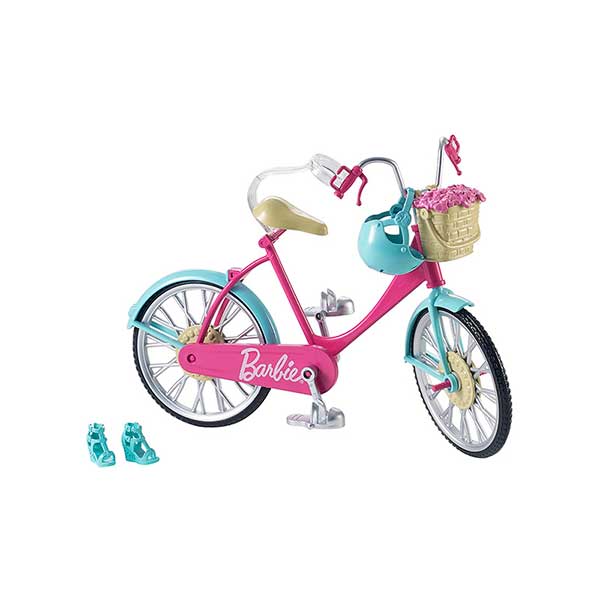 Con esta bicicleta, Barbie® podrá pasear por la imaginación de todas las niñas! Su cuadro rosa, los guardabarros de color turquesa y los toques plateados son preciosos.