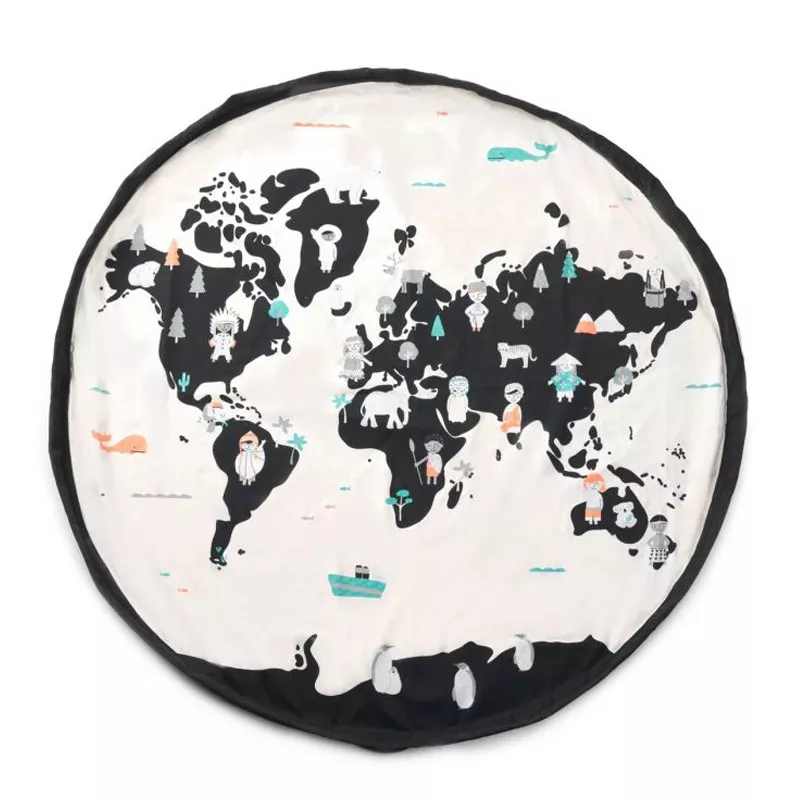 Una necesidad para los niños que desean explorar el mundo de Play and Go con esta increíble bolsa de almacenamiento de mapamundi de doble impresión.