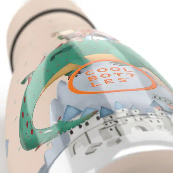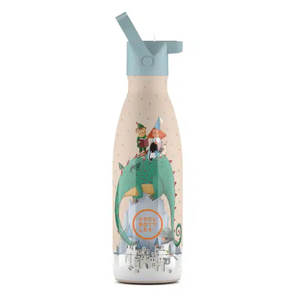 La botella con los diseños más chulis que podrás imaginar. Tacto mate. Todas las botellas de los peques vienen con un tapón con pajita incluida y un asa para poder transportarla mucho más cómodamente, limpia pajitas y tapón convencional. También incluyen unas pegatinas súper chulas y un QR con una historia para contar a los peques y no dejar de sorprenderlos.