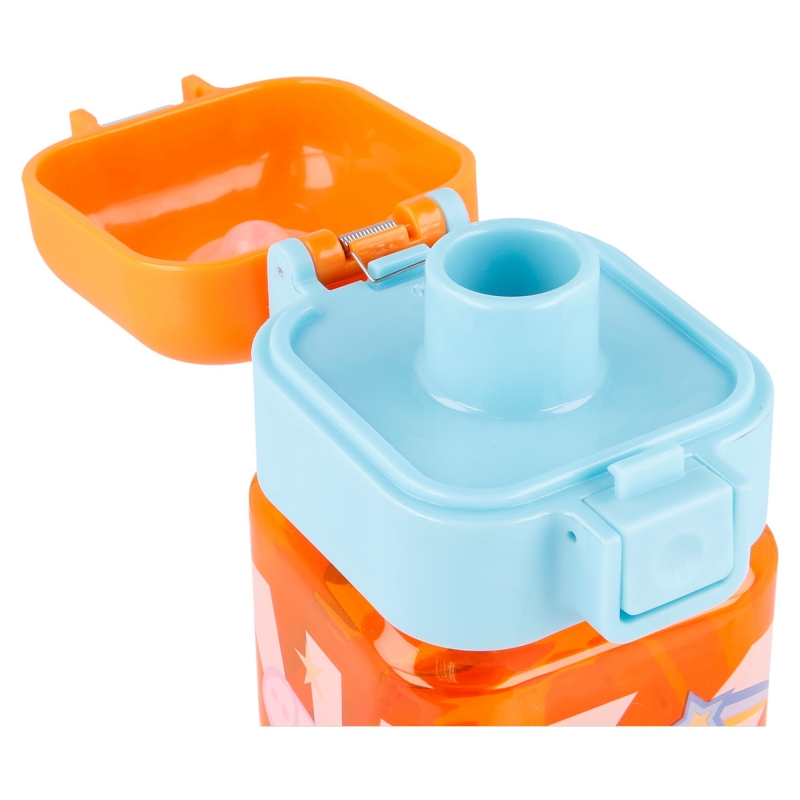Original botella de agua cuadrada con cierre de seguridad que se acciona con un botón para evitar fugas. Nuestra botella tiene un diseño deportivo, gracias a su asa, que permitirá a los niños estar hidratados allá donde vayan.Características: