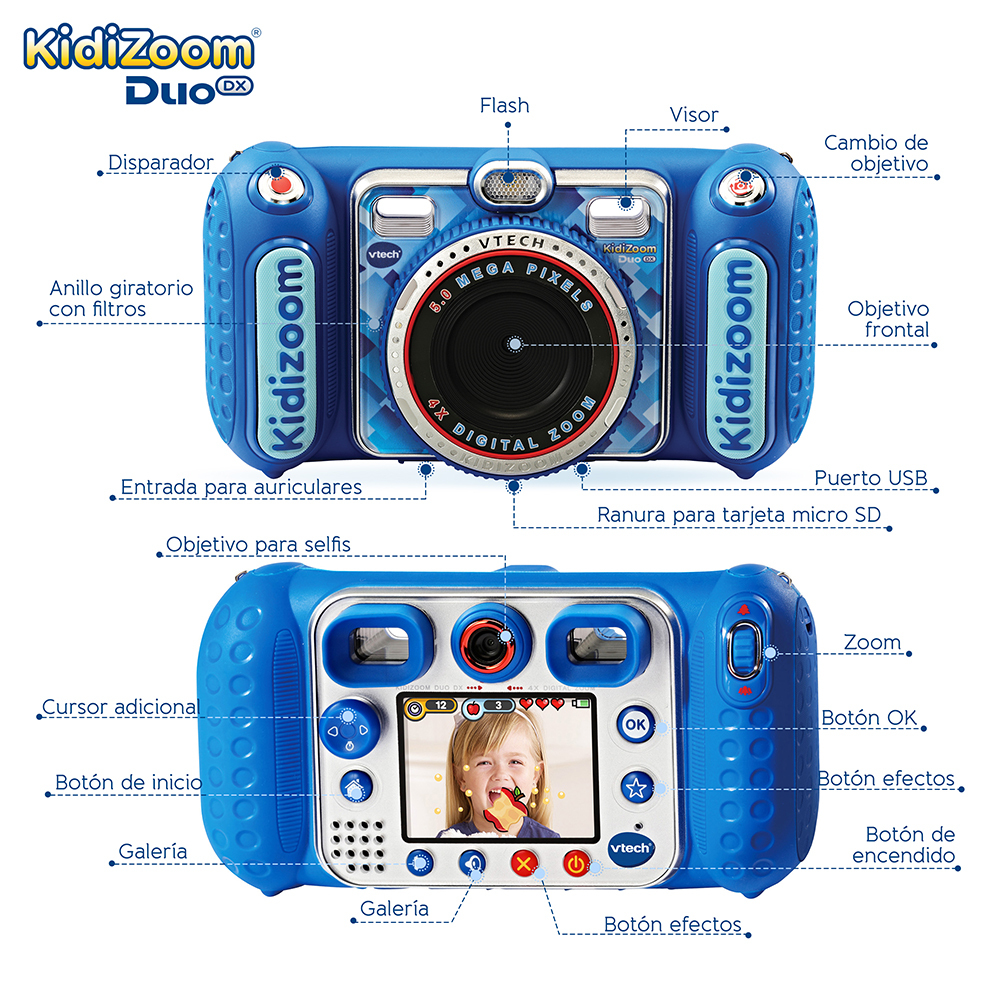 Cámara de Fotos Digital Kidizoom Duo DX 10 en 1 Azul (VTECH)