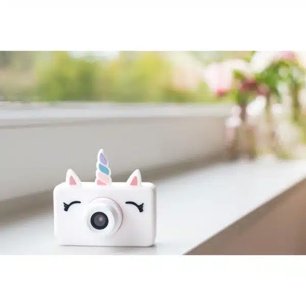 Esta cámara digital y grabadora de vídeo para niños de 32 megapíxeles con diseño de unicornio de The Zoofamily es extremadamente bonita, pequeña y ligera. Personaliza tu cámara infantil con pegatinas e incluso más de 20 filtros y marcos digitales.