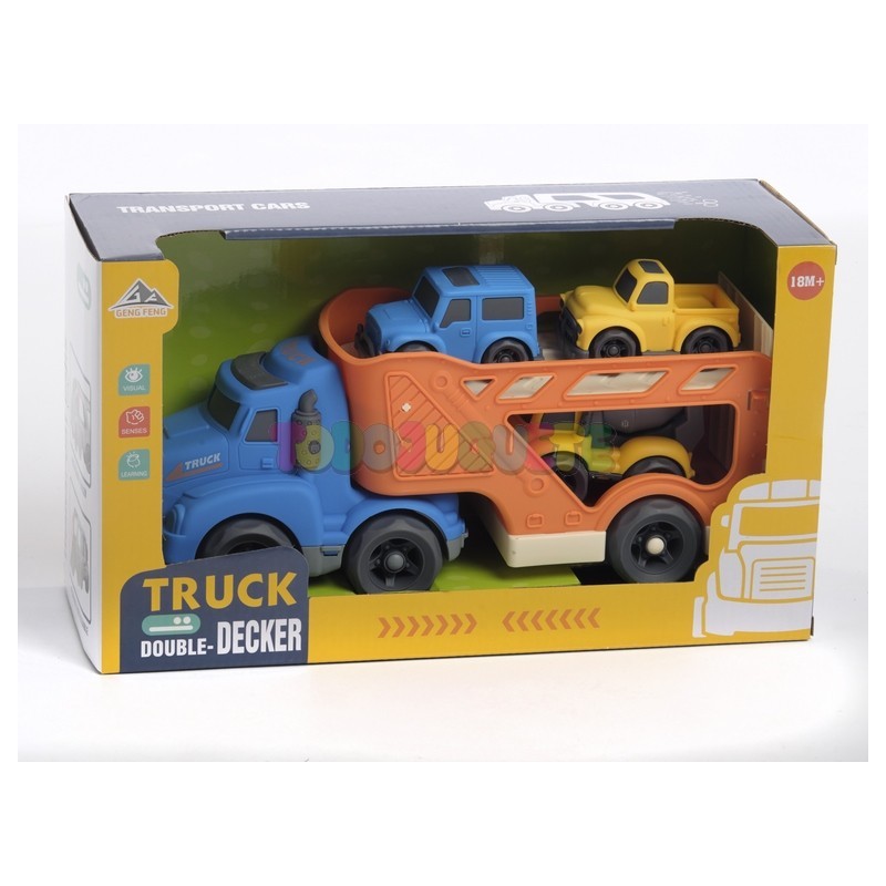 Camión portavehículos de 32 cm con 3 vehículos de 9 cm.