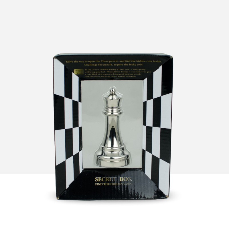 Fantástico puzzle con forma de pieza de ajedrez de alta calidad. Este rompecabezas metálico esconde en su interior una moneda de la suerte, ¿serás capaz de extraerla? Podrás conseguirlo después de averiguar su mecanismo secreto, ¿te atreves?