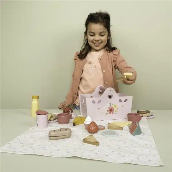 Observe a su pequeño explorar la diversión de hacer un picnic, crear comidas deliciosas y desarrollar la creatividad a través del juego de roles con este juego de picnic de madera.