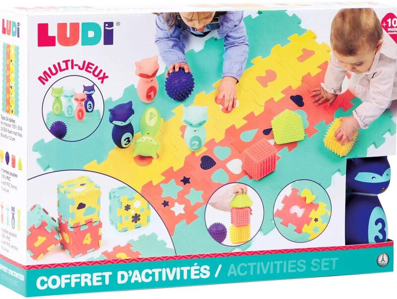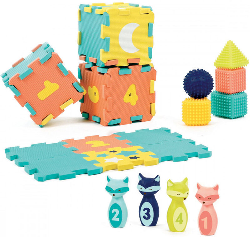 El juego de bolos, apilar y jugar a construir hermosas torres y el pequeño tamaño de las losas permite un juego de construcción (cubos, etc.).