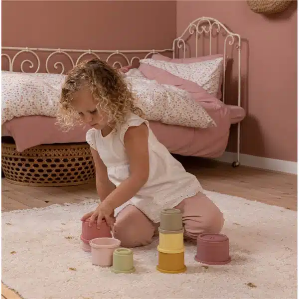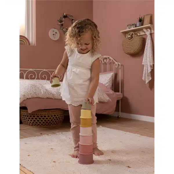 1,2,3 ¿Qué altura tendrá la torre? Este juego de vasos desafía a tu niño a apilarlos uno encima del otro. ¡Cuán grande será la alegría cuando la torre esté terminada! Y qué divertido es derribar la torre otra vez. Horas de diversión garantizadas. Disponibles en cuatro colores diferentes, seguro que entretendrán a tu pequeño. Los 8 vasos apilables tienen un número en la parte superior y encajan fácilmente entre sí para evitar que la torre se caiga. Tu pequeño aprenderá sobre los números y desarrollará la motricidad fina. Apila y crea la torre en un parque, en el suelo, en la bañera o en el arenero. Gracias al material versátil se puede utilizar en cualquier lugar. Coloque los vasos pequeños dentro de los más grandes para guardarlos fácilmente.