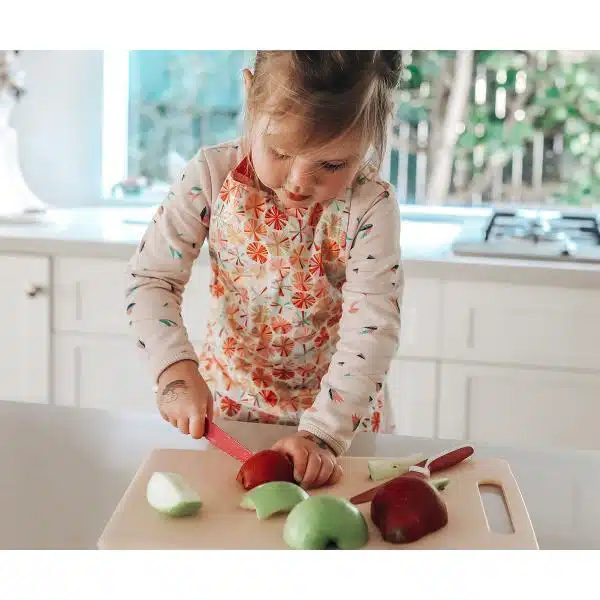 A los niños les encanta cocinar, déjalos que sean ellos los que corten las frutas y verduras .
