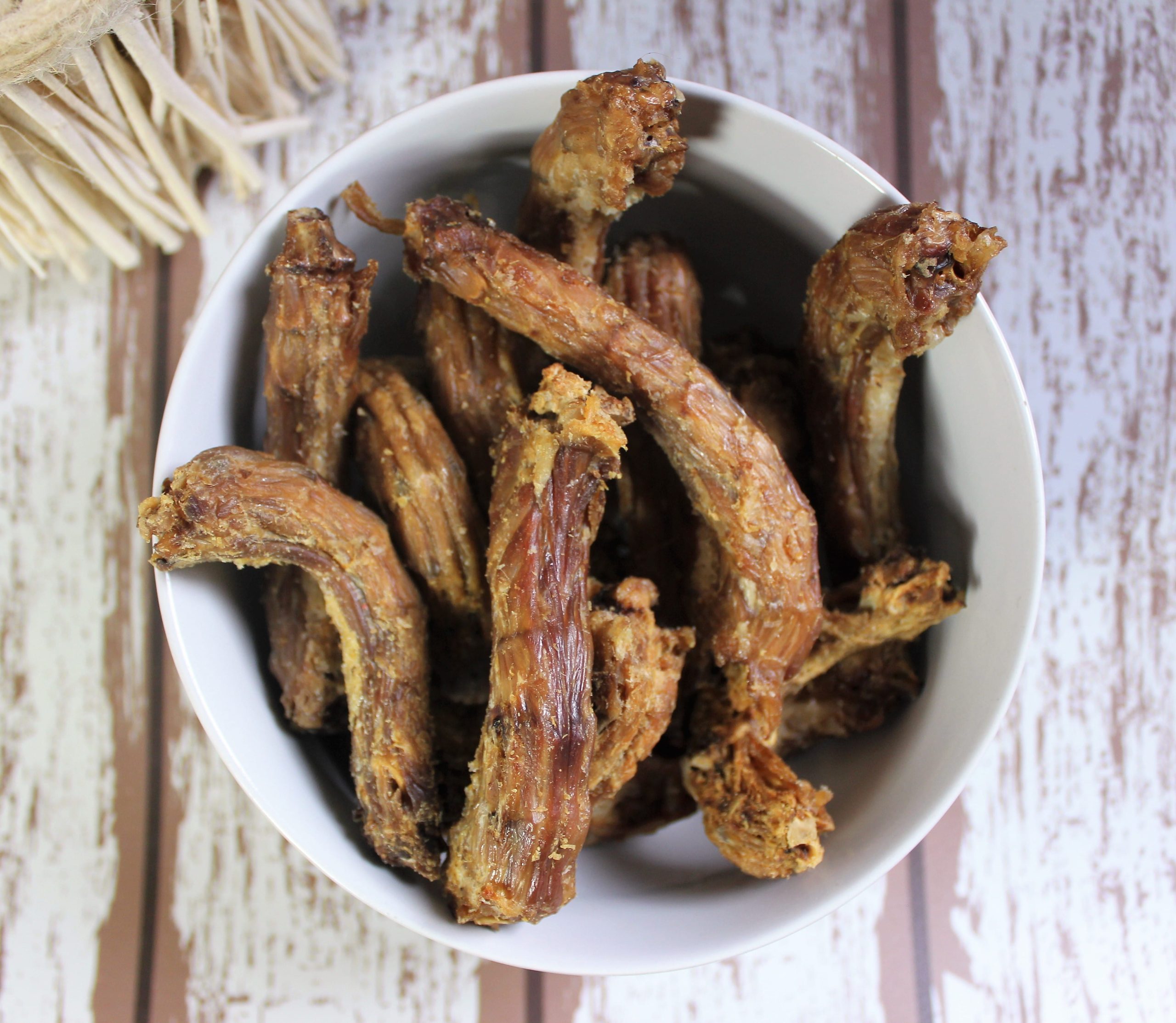 Los cuellos de pollos son snacks naturales para perros, deshidratados, crujientes y blanditos. Unos deliciosos snacks que no pueden faltar en la despensa de tu perro o gato