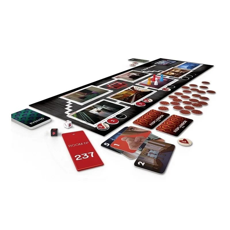 Un juego de mesa cooperativo que nos sumerge en el desasosegante hotel Overlook, cerrado durante el invierno… y tú y tus amigos tendréis que cuidar de él. Sin embargo, sucesos extraños os esperan. Cada habitación respira, susurra… desea poseeros ¿Podréis reunir suficiente fuerza de voluntad como para pasar el invierno sin que el hotel os posea?