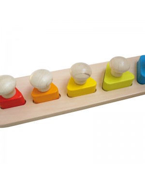 5 piezas en forma de triángulo con clavijas grandes para un mejor manejo; ayude a los niños a comprender la secuenciación y a que coincida con la forma, el tamaño y el color geométricos; la base incluye el color correspondiente