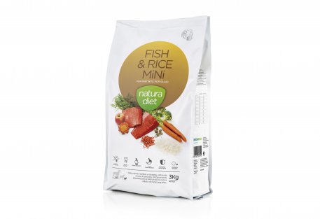 Alimento completo, saludable e hipoalérgenico, elaborado con ingredientes naturales de baja o nula capacidad alergénica. Para perros adultos de raza pequeña, ND Fish & Rice Mini refuerza el sistema inmunitario y favorece el peso ideal del animal.