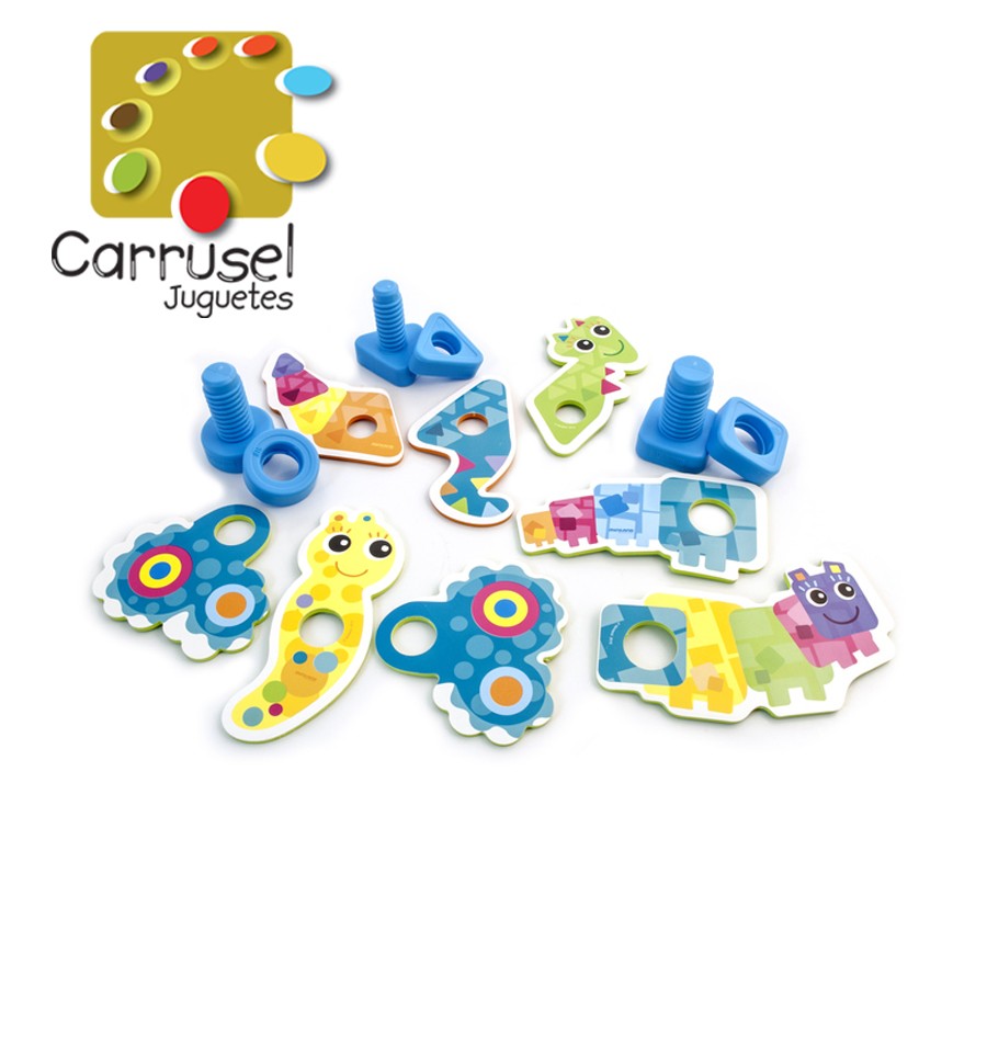 ¡Los bichos de colores te necesitan!. Dales vida atornillando sus cuerpos. Une sus diferentes partes y desarrolla tu habilidad manual y tu capacidad de razonamiento.