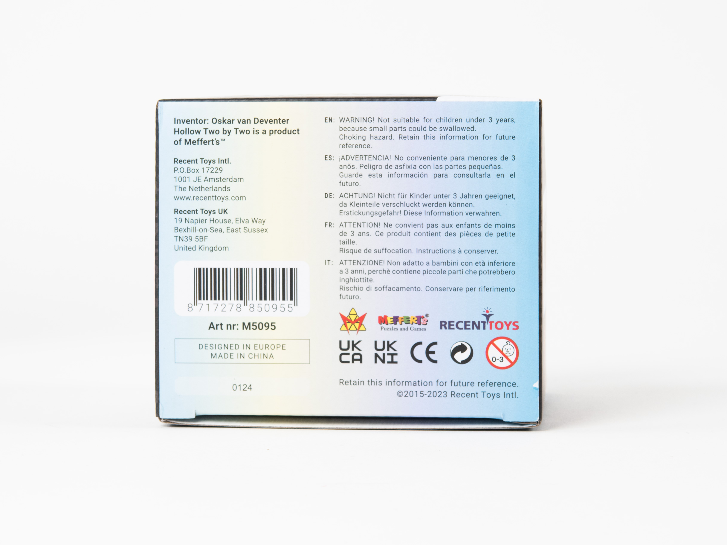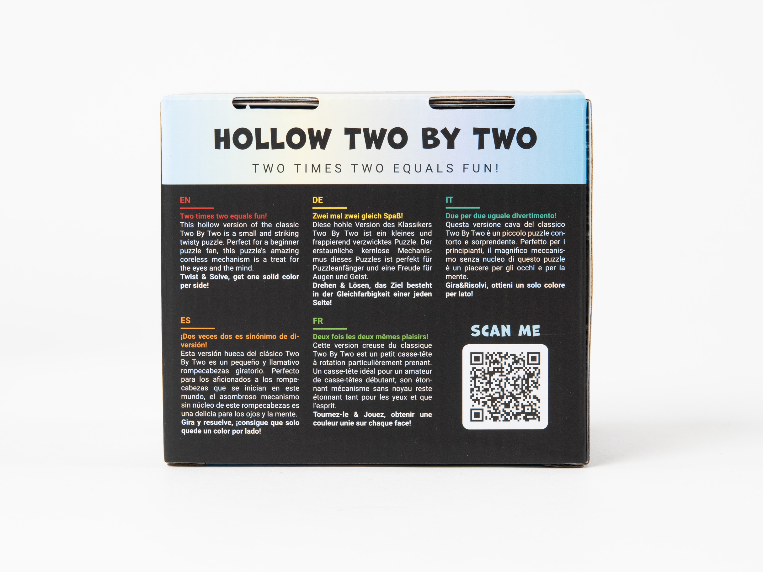 Esta versión hueca del clásico Two By Two es un pequeño y llamativo rompecabezas giratorio. Perfecto para los aficionados a los rompecabezas que se inician en este mundo, el asombroso mecanismo sin núcleo de este rompecabezas es una delicia para los ojos y la mente.