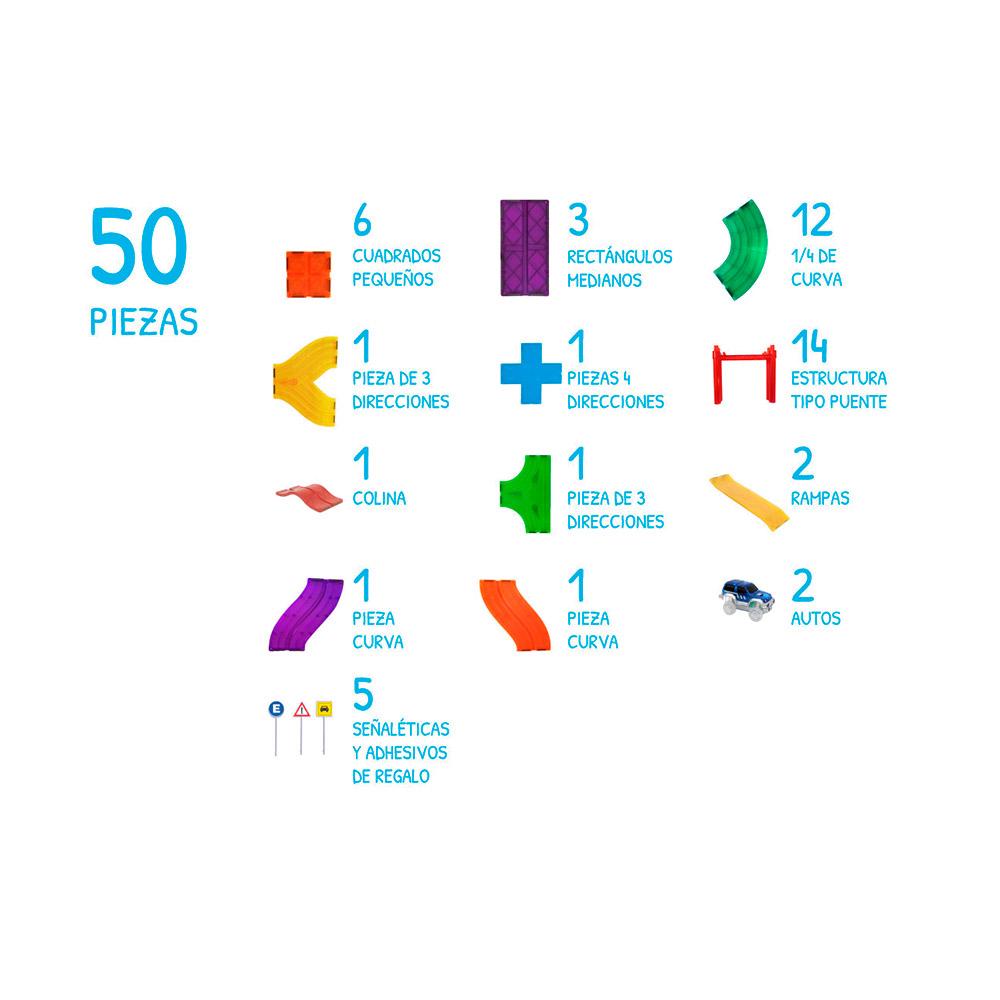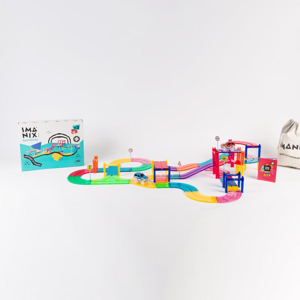 Imanix permite a los niños crear impresionantes circuitos de carreras, desafiando la gravedad y explorando conceptos de física mientras se divierten. Las piezas se ensamblan fácilmente, permitiendo que los pequeños ingenieros experimenten con curvas, desniveles y mucho más, todo mientras desarrollan habilidades motoras y pensamiento crítico.