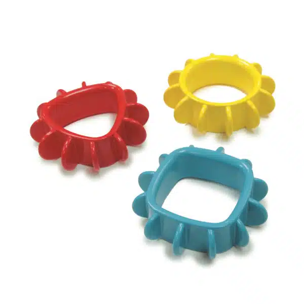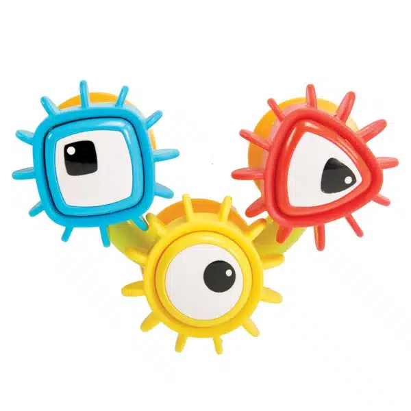 Encaja formas y colores y coloca las diferentes formas en el lugar correcto para ver girar todos los engranajes a la vez.