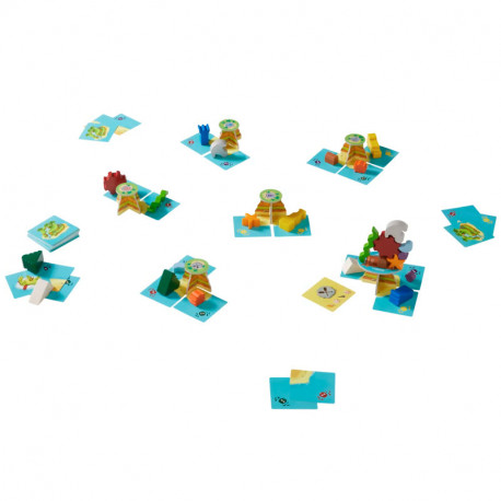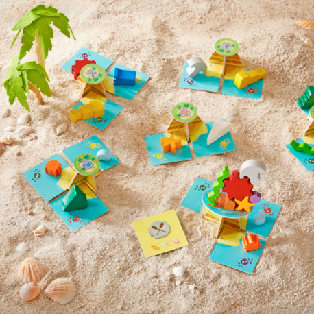 Los jugadores/as apilan los objetos uno a uno estratégicamente sobre la balsa y los transportan de una isla a otra. Pero, ¡cuidado! Hay que tener buen pulso; de lo contrario, los objetos caerán por la borda.