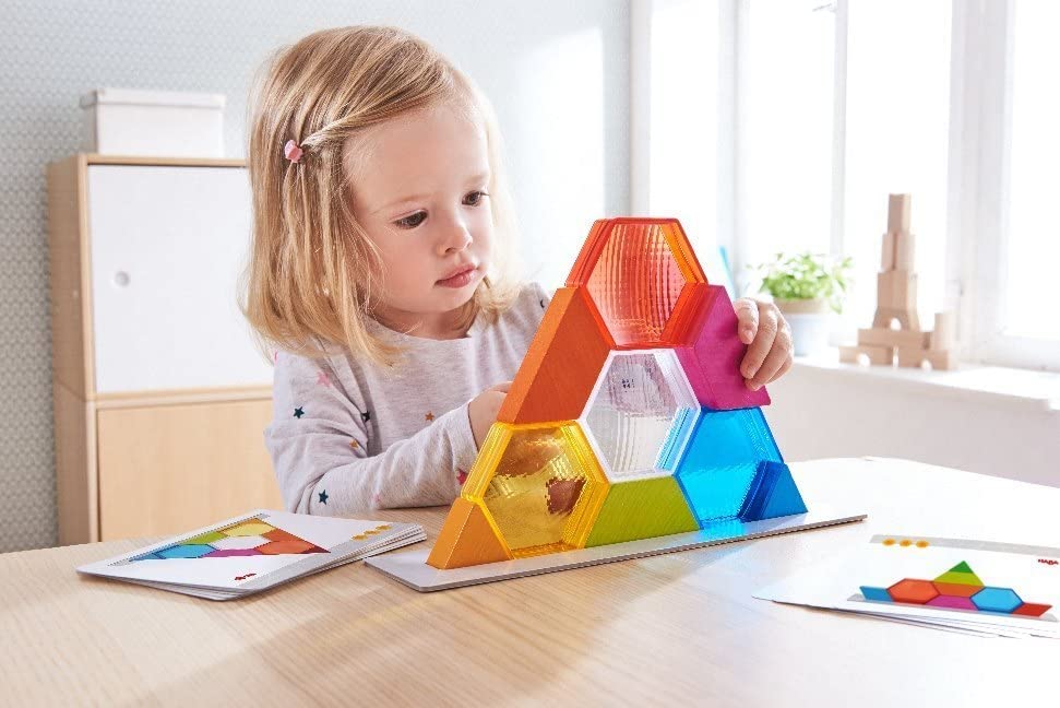 ¡Los amantes de las construcciones y los juegos cromáticos ya están listo para trabajar! Coloca los prismas en horizontal formando mosaicos o en vertical creando figuras en altura, y descubre los maravillosos efectos de luz que se producen