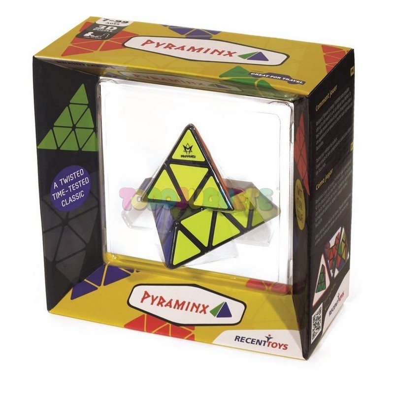 Resistiendo al paso del tiempo, PYRAMINX sigue siendo popular 42 años despúes de que Uwe Meffert lo inventara. Se trata de uno de los más vendidos del mundo y todavía hoy sigue captando la imaginación gracias a su aspecto y sensación original. Girar y retroceder para mezclar los colores. Despúes intentar volver a alinear los colores para obtener una cara del mismo color.