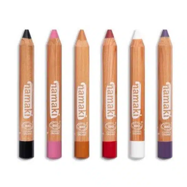Pack de 6 lápices de maquillaje de Namaki con los que decorar la cara y el cuerpo de los peques para sus fiestas de disfraces preferidas.