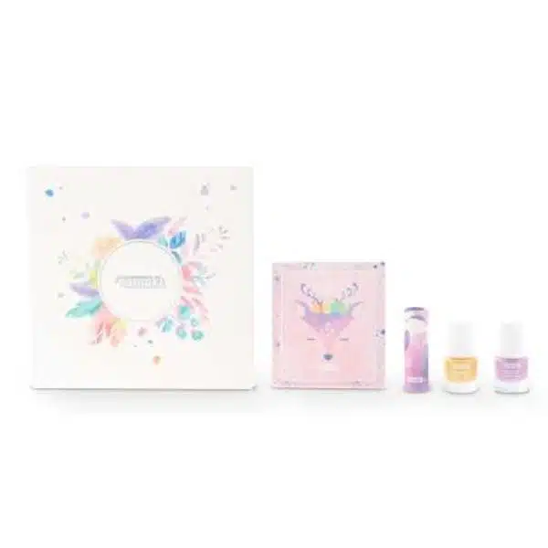 Abre las puertas de nuestro Reino de los Cuentos de Hadas y emprende un viaje de ensueño para descubrir los productos más vendidos de nuestra gama de Maquillaje: una paleta de 7 sombras de ojos, 2 esmaltes de uñas (Malva y Dorado) y un bálsamo labial Frambuesa.