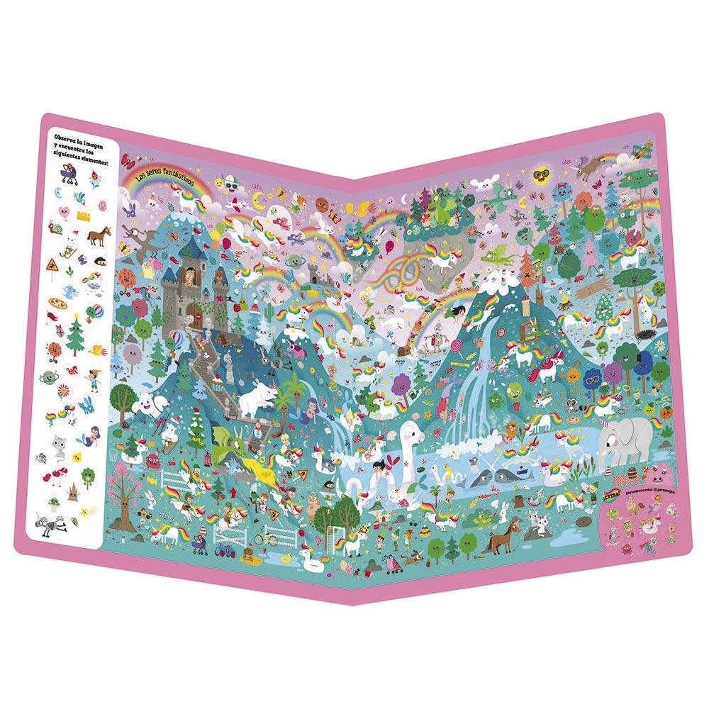 Explora el mundo de los seres fantásticos, el de las fábulas, el fondo del mar, con todos sus misterios, el mundo de los mitos, el de los juguetes, los monstruos, los superhéroes, e incluso busca que te busca por una impresionante doble página sobre el futuro.