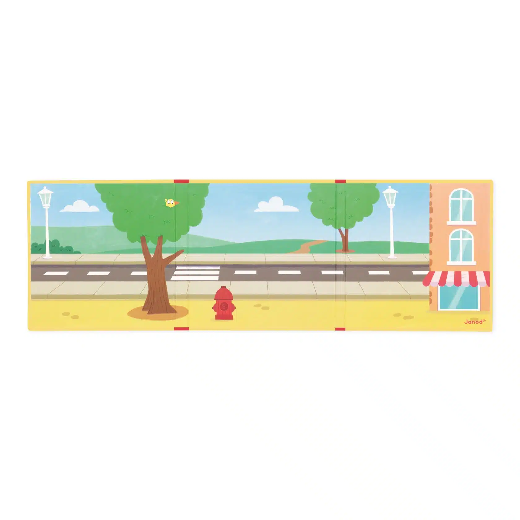 Este juego magnético consta de un tablero ilustrado con los colores de los bomberos y 30 imanes que posicionar en el decorado.