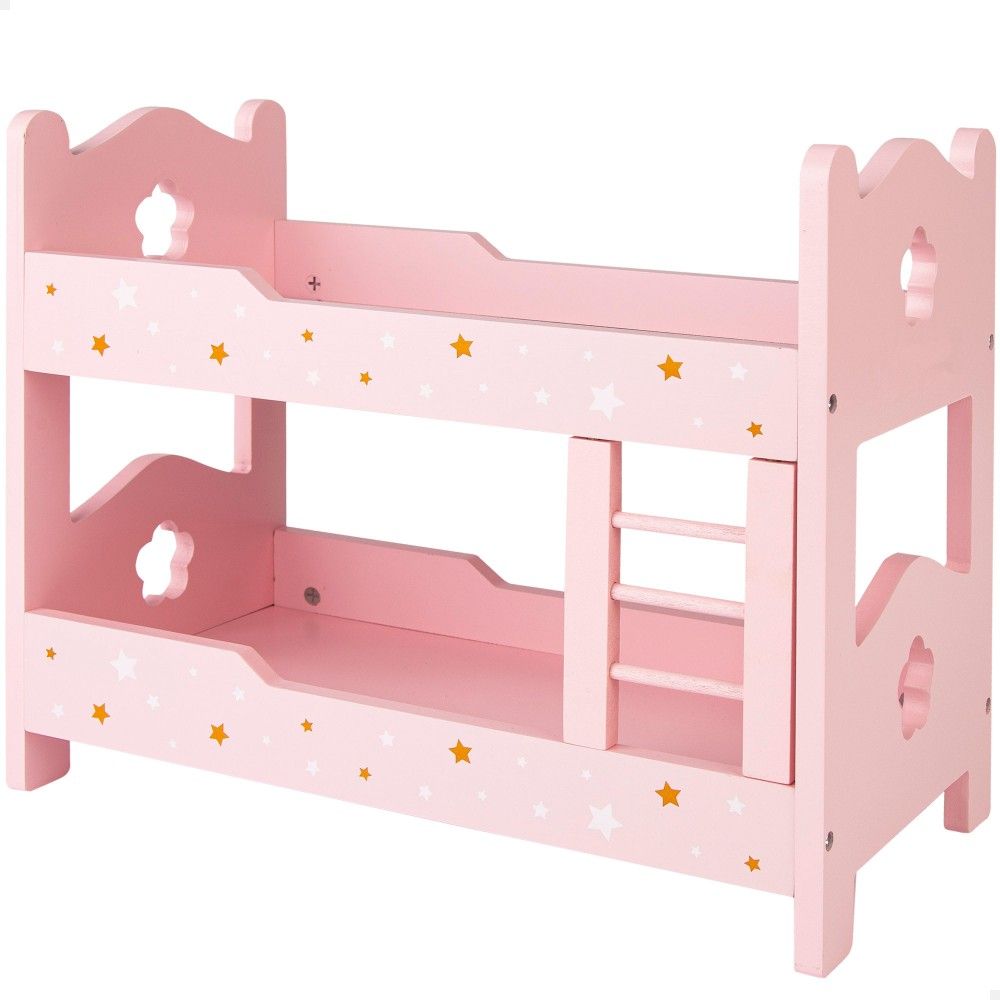 ¡Duerme a la vez a tus muñecas bebé en esta dulce y delicada litera de madera!