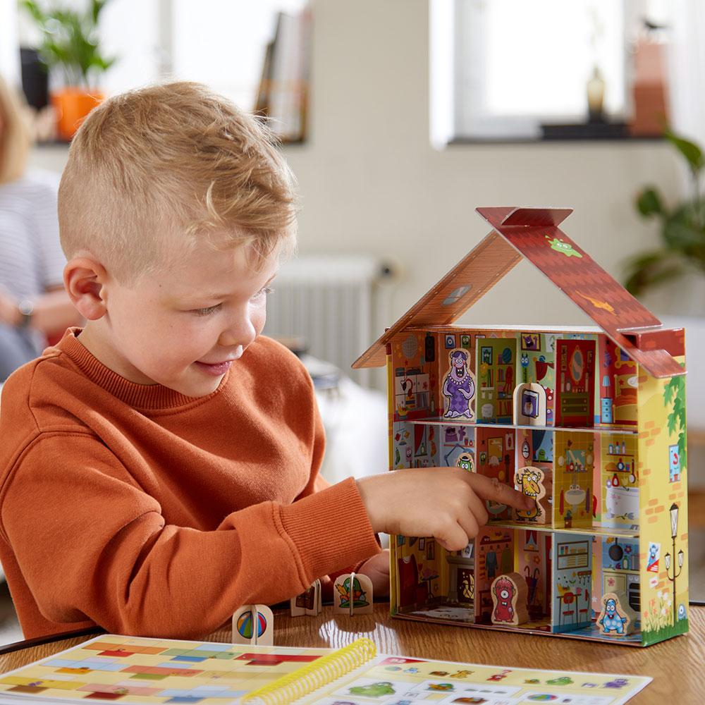 La familia de Wanda se pasa el día buscando donde se ha metido esa monstruita revoltosa, ayúdalos a encontrarla por toda esta colorida casa. Para ello, necesitaremos colocar a todos los personajes de esta peculiar familia de monstruos, donde nos indique la carta objetivo. El juego cuenta con 60 desafíos donde el nivel de dificultad va aumentando progresivamente a medida que resolvemos cada reto. ¿Te atreves con este divertido y monstruoso reto?