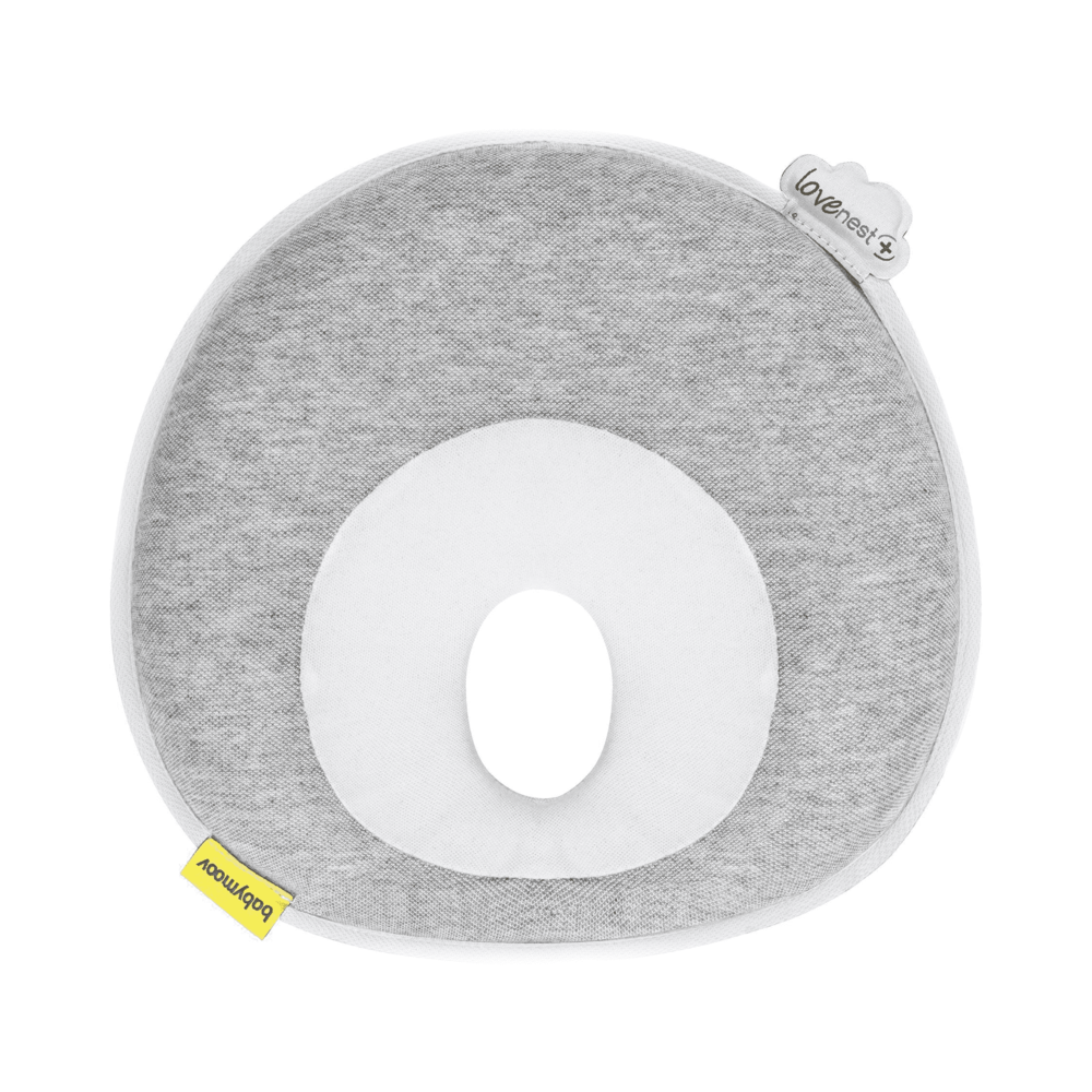 El protector de cabeza Lovenest de Babymoov un cojín ergonómico y termorregulador que ayuda a mantener una cabeza redondeada desde su nacimiento.