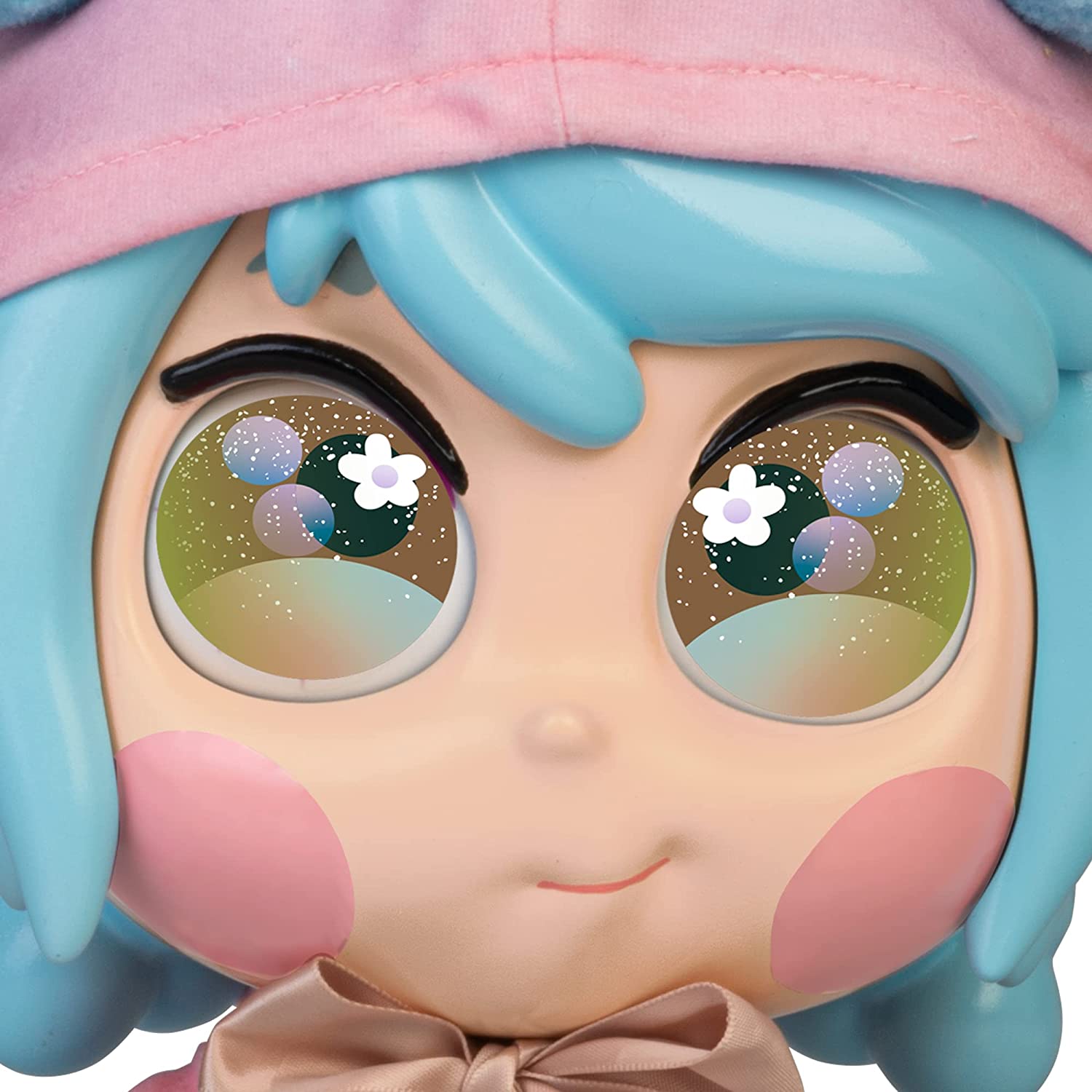 A Trottie Mia le encanta todo lo que tenga que ver con Tokio. Vestida con un look romántico; jersey rosa con un lazo beige y una capucha con pompones azules a juego con su pelo. El conjunto se complementa con una falda plisada y un bolso. Sus ojos cambian y muestran hasta tres expresiones diferentes.