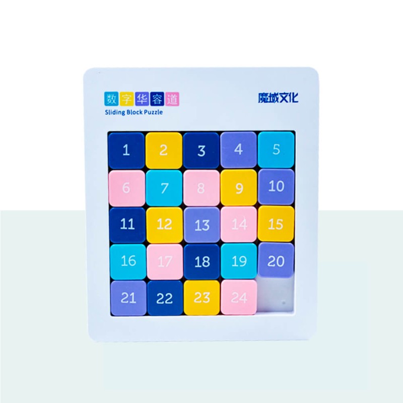 El Moyu Morandi Klotski 5×5 es un puzzle deslizante muy divertido de resolver. Este tablero es una matriz de 5×5 con los números del 1 al 24, y falta una pieza para poder hacer los intercambios. Al tener las piezas de distintos colores ofrece más de una posible solución. Es un tablero magnético en el que las piezas se deslizan increíblemente bien. Se puede resolver de las siguientes formas.
