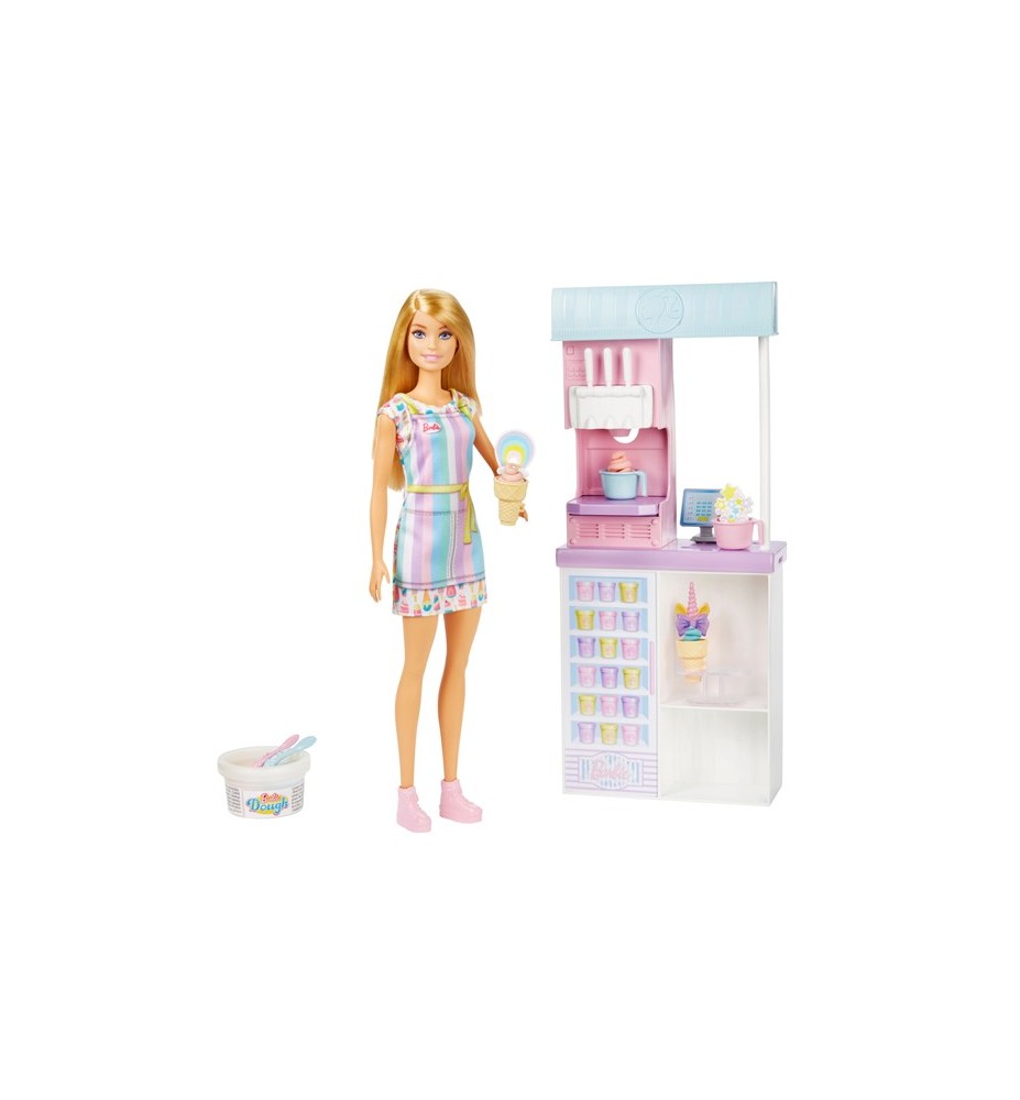 Descubre la experiencia de dirigir una heladería con el conjunto de juego de heladería de Barbie. A las niñas les encanta todo lo relacionado con los helados, y con este conjunto de juego podrán dirigir una heladería y preparar helados deliciosos.