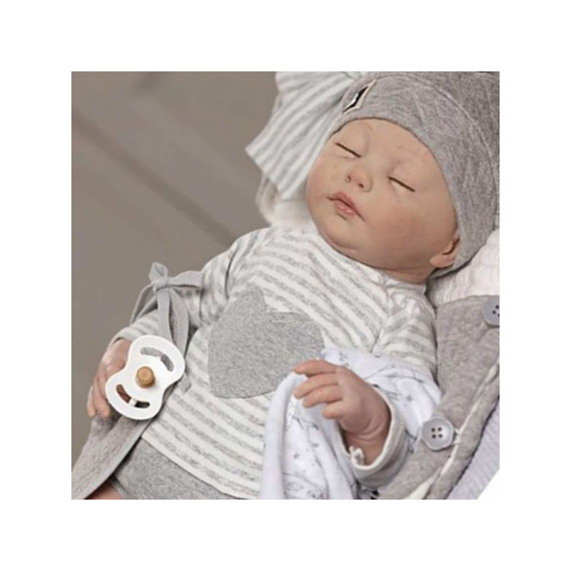 Los bebés con torso de tela y extremidades de vinilo siliconado son mucho más manejables. El vinilo siliconado es un tipo de material que está entre el vinilo y la silicona, siendo más blando y elástico que el vinilo pero con la durabilidad del mismo, lo que lo hace más duradero contra roces y rasgaduras. Y debido a su composición que lo hace un material suave, las muñecas tienen una sensación más realista al tacto. Las extremidades de vinilo siliconado están unidas al torso de tela desde hombros y cadera por medio de bridas que les permiten rotar para darles una mayor movilidad a la hora de cambiar al bebé de postura o jugar con él. Y el relleno de la muñeca está repartido entre el cuerpo y la cabeza del bebé para compensar su peso, haciendo que la cabeza del bebé adquiera cierta inestabilidad propia de los niños de corta edad que otorga cierto nivel de realismo a este modelo.