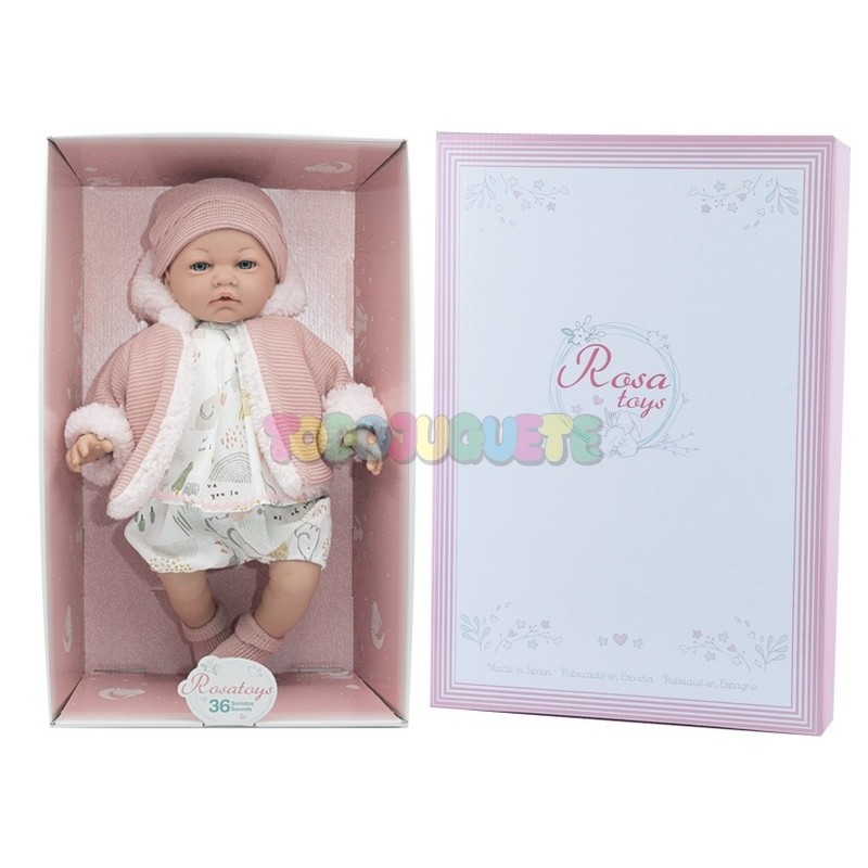 Muñeca Mia de 46 cms con 36 sonidos y mantita a conjunto..