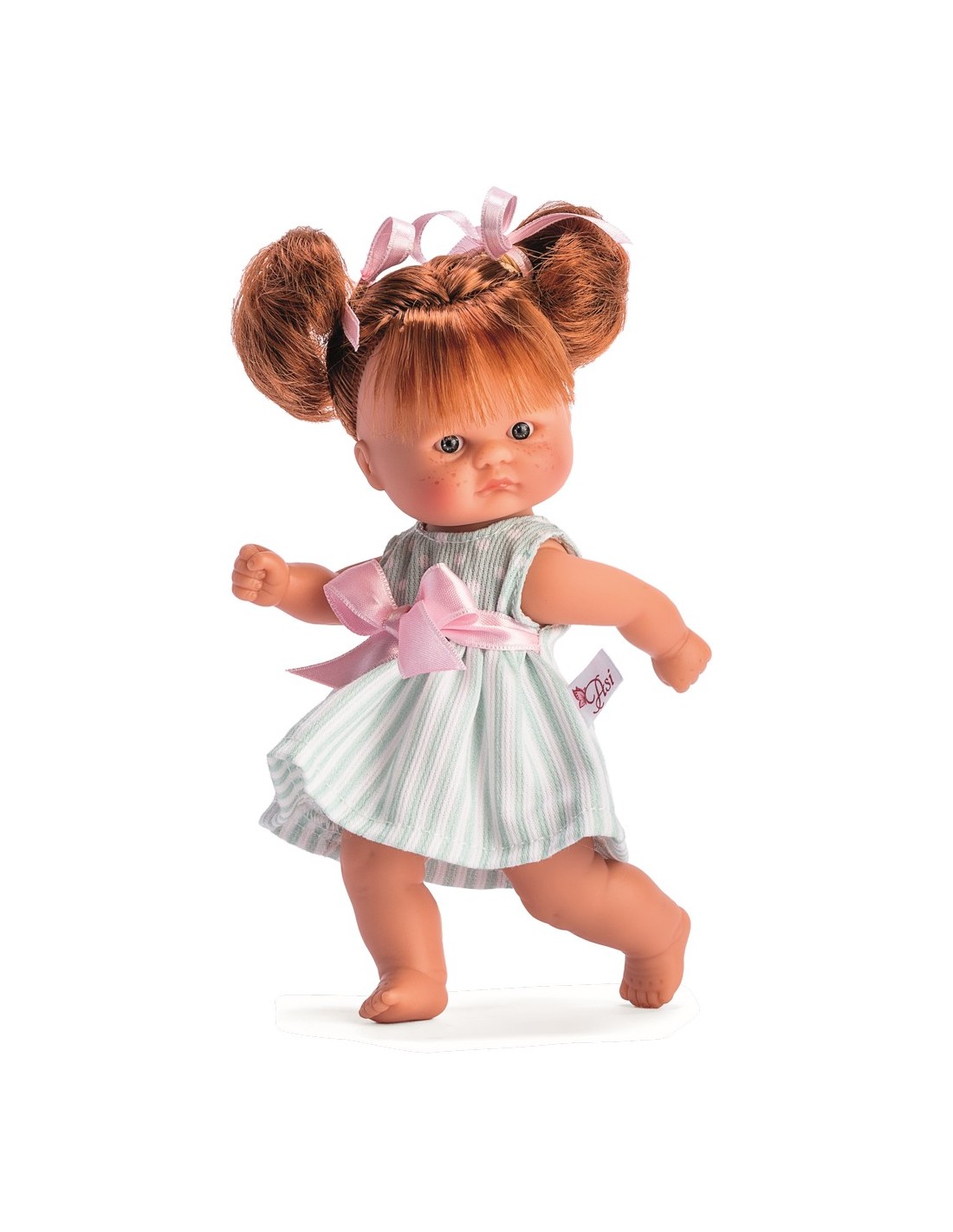 Muñeca Vestido De Rayas Verdes y Lazo Rosa. Col(MUÑECAS ASÍ)