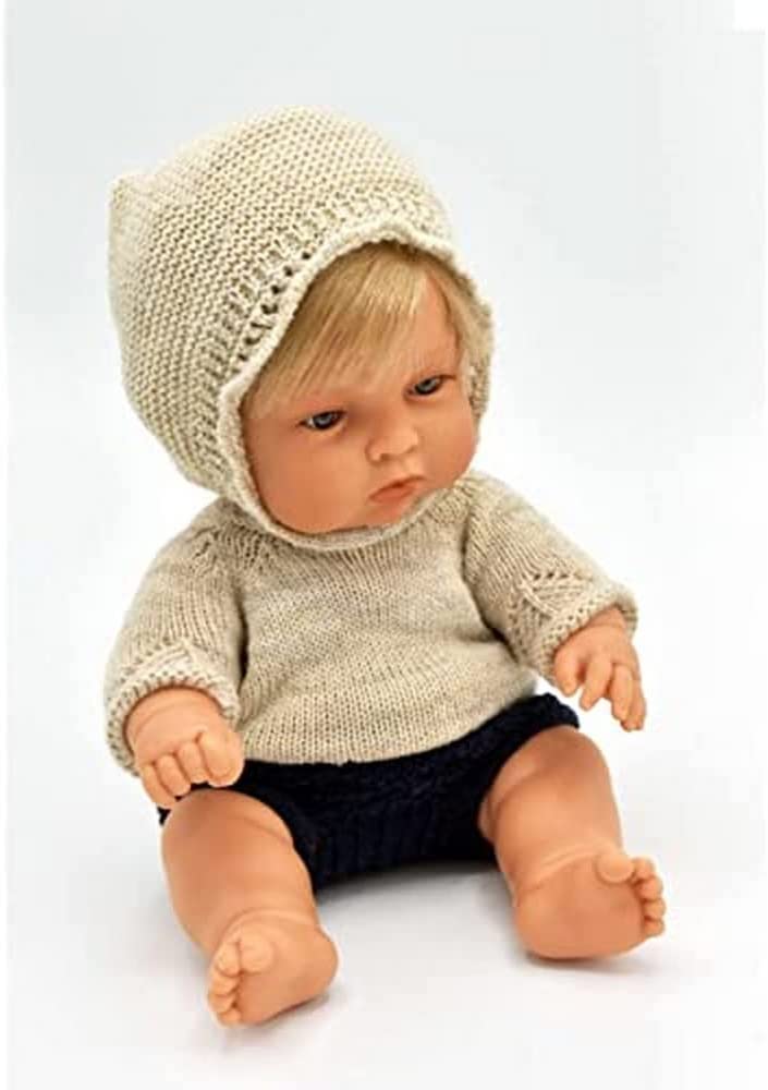 Espectacular muñeco de 32 cm con una infinidad de detalles como son: las venitas de los brazos, el brillo en la piel y en los labios, las formas de los deditos… Todo está hecho artesanalmente y con materiales orgánicos. Se puede cambiar la ropita, poner pañales, sacar de paseo, todo tipo de actividades.