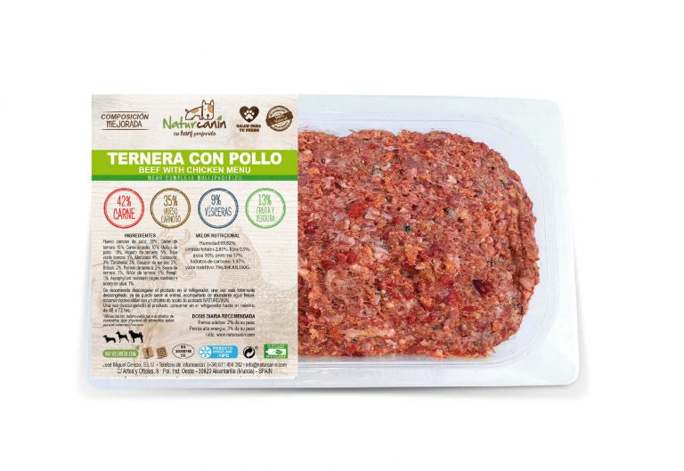 Delicioso menú completo y multiprotéico compuesto por ternera y pollo. Con gran variedad de vísceras y complementos, es rico en vitaminas, minerales y colágeno. Apropiado para perros sanos, con problemas articulares, perros deportistas, perros convalecientes o anémicos, sometidos a un estrés oxidativo mayor, que necesitan una cantidad extra de hierro y nutrientes.