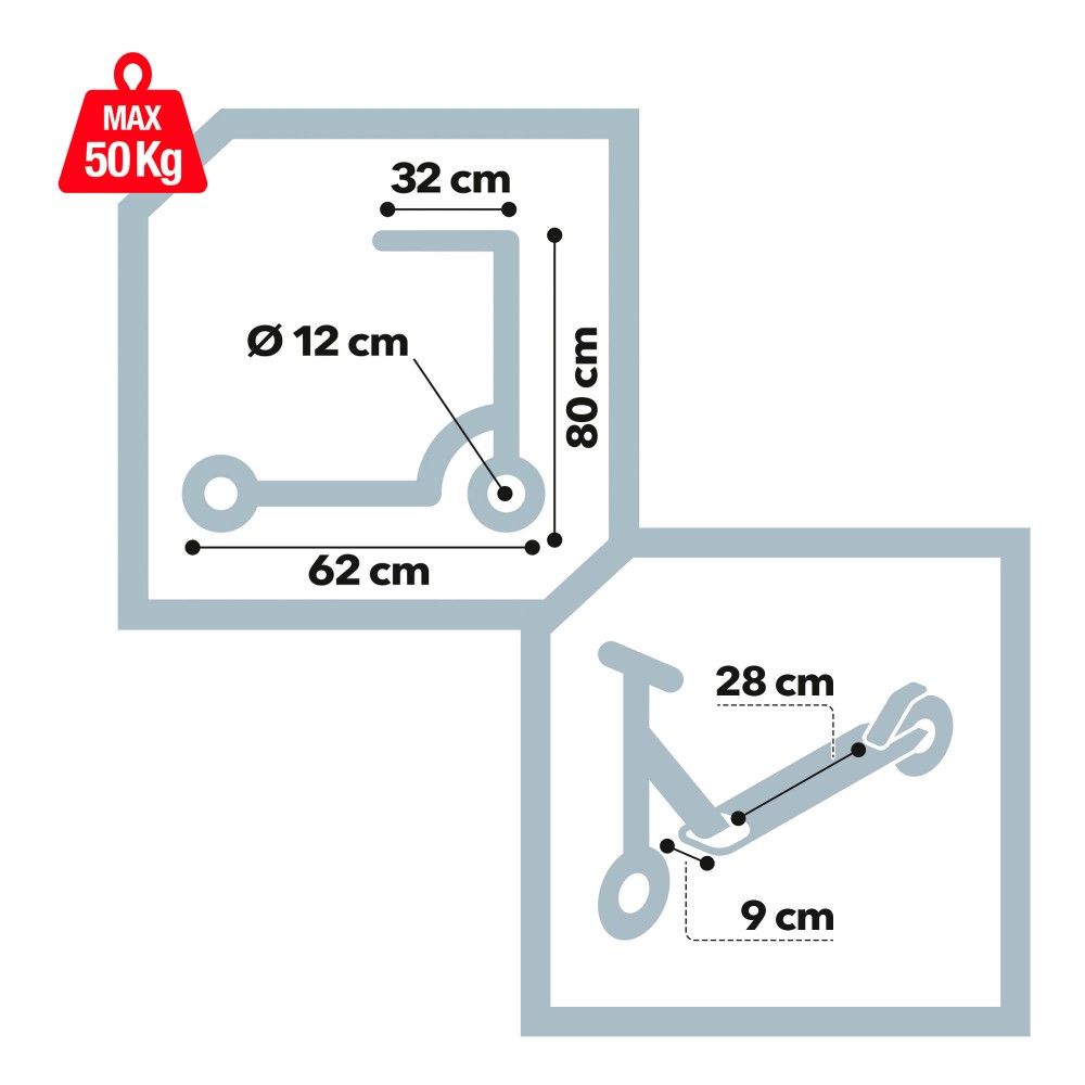 Patinete para niños con nivel principiante y un peso máximo de 50 kg.