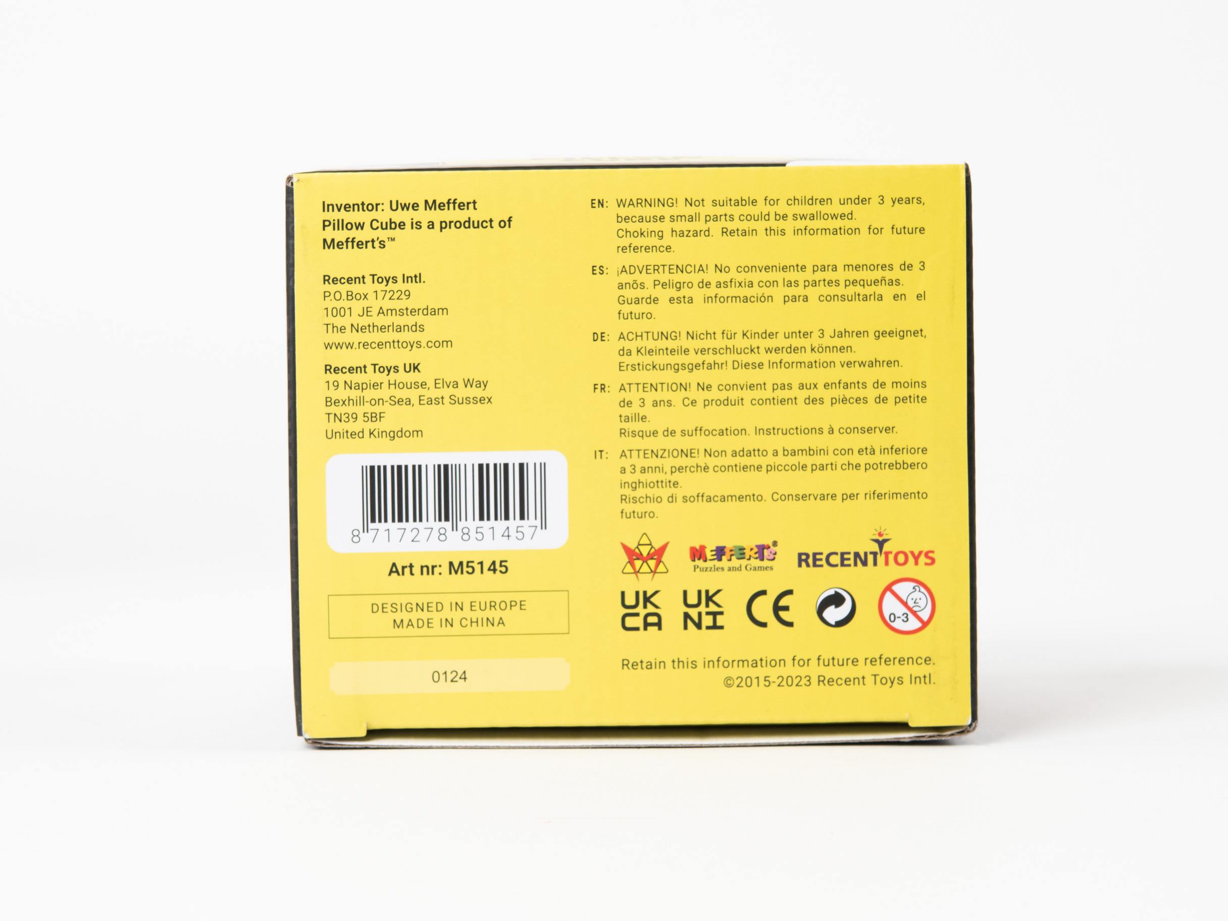 Presentamos el Pillow Cube, un rompecabezas 3×3 atemporal con colores vivos y fácil de manejar, todo ello en un cómodo diseño en forma de almohadón. Perfecto para los amantes de los rompecabezas que aprecian lo clásico.