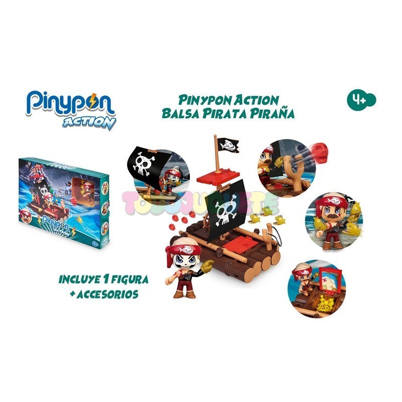 Incluye 1 figura de pirata, 3 pirañas y pequeños accesorios.