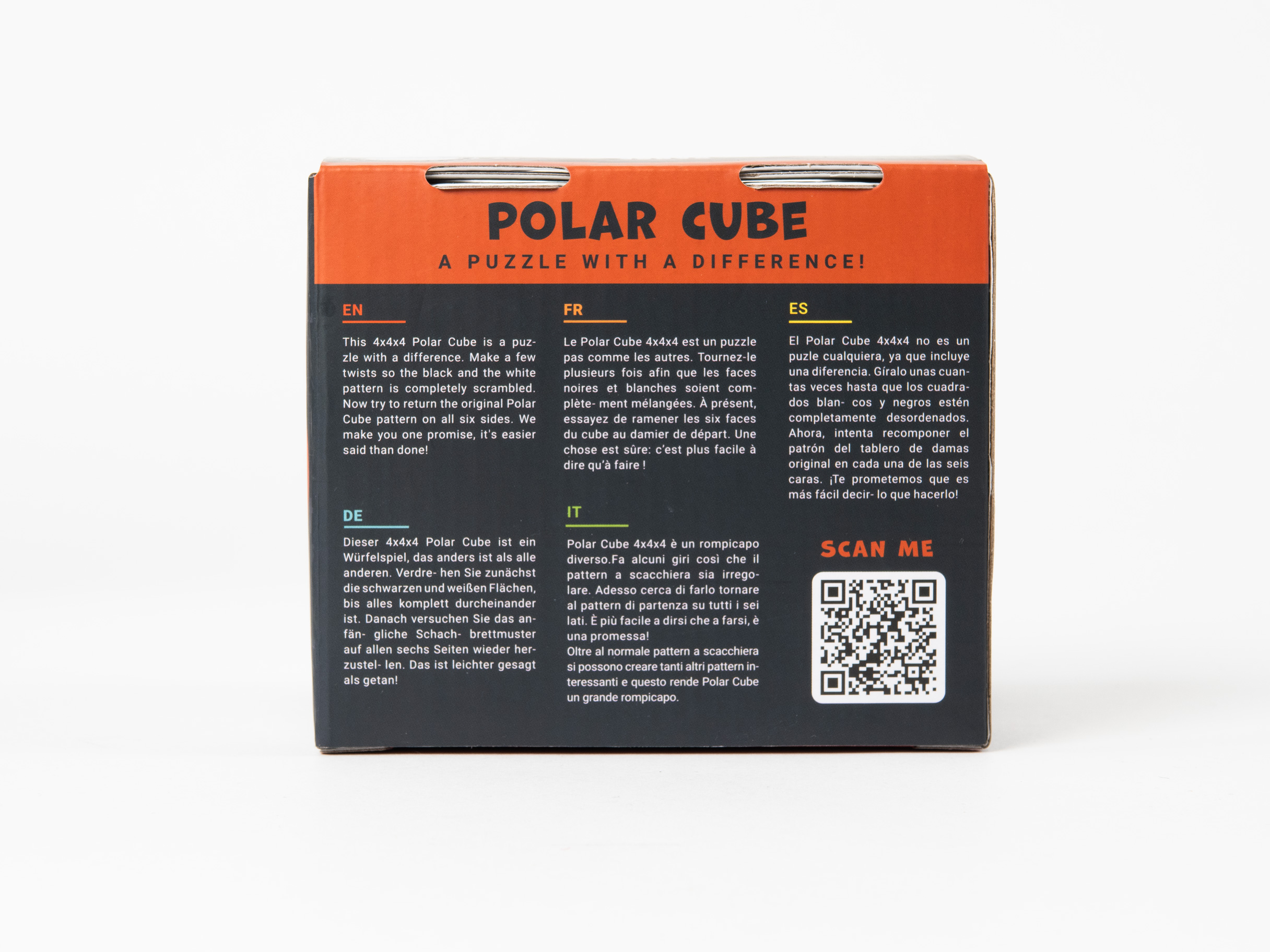 El Polar Cube 4x4x4 no es un puzle cualquiera, ya que incluye una diferencia. Gíralo unas cuantas veces hasta que los cuadrados blancos y negros estén completamente desordenados.